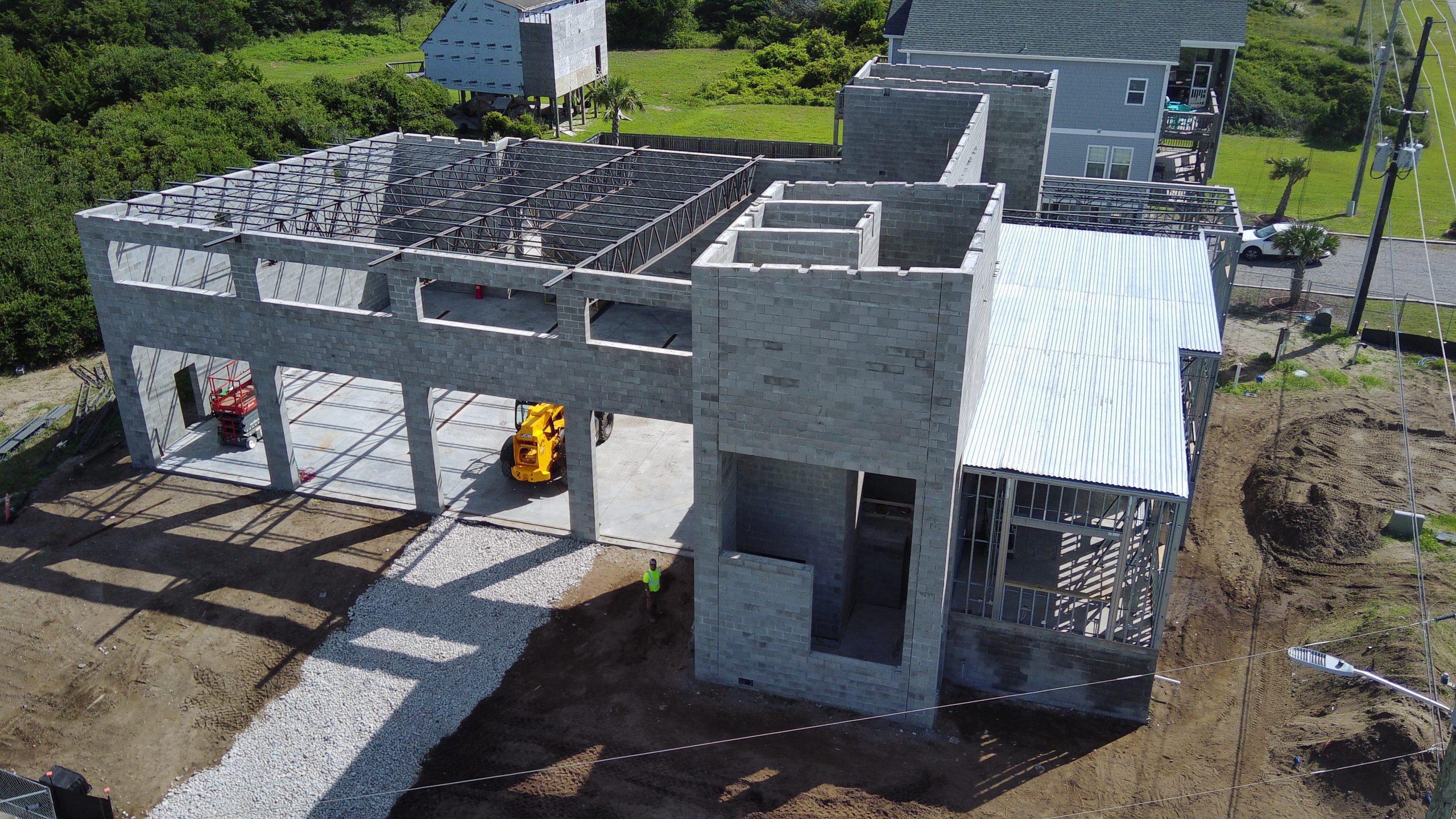 To ensure long-term resilience, the ground floor will be elevated to +8 feet above sea level, with flood-proofed walls constructed from load-bearing concrete blocks. The exterior will feature light-colored cementitious siding to reflect heat, along with architectural stone veneer and synthetic trim. Reinforced concrete will be used for the elevated floors, providing a strong foundation for the structure. Once completed, the new Fire Station No. 2 will be the most robust and reliable building in the area, ready to serve the southern half of North Topsail Beach for years to come.