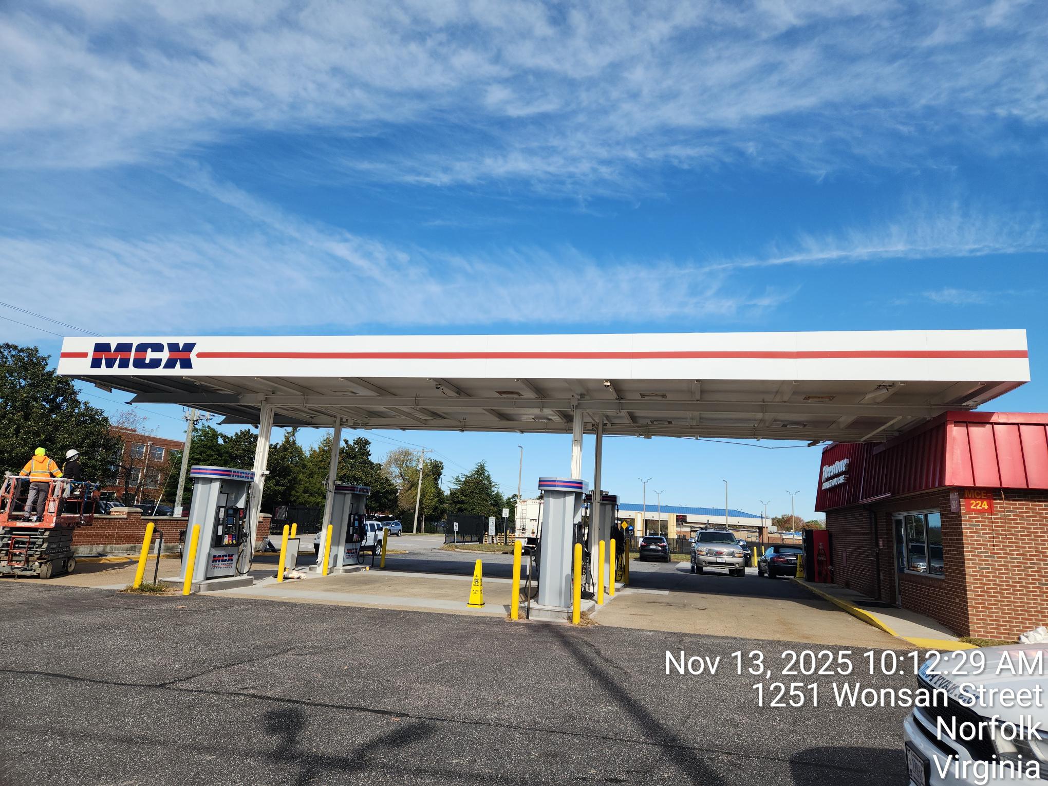 Highlights included construction of 2 interior storage rooms; installed new cooler & freezers; new interior elevator lift; storefront door replacement; roll-up door replacement; warehouse lighting; exterior bollard replacement; all new interior finishes; EcoStone flooring; renovation of 2 restrooms; new 19’ 2-sided LED monument sign; roof repairs; recasting of 2 concrete slabs; repairs to concrete curbs; lightning protection, replacement of 4 rooftop packaged units along with the appropriate modifications to electrical system, ductwork, and piping; new point-of-sale units; food bar, new lighting for the interior and exterior of the building and fuel canopy; replacement of fuel station canopy and new 75kVA transformer.