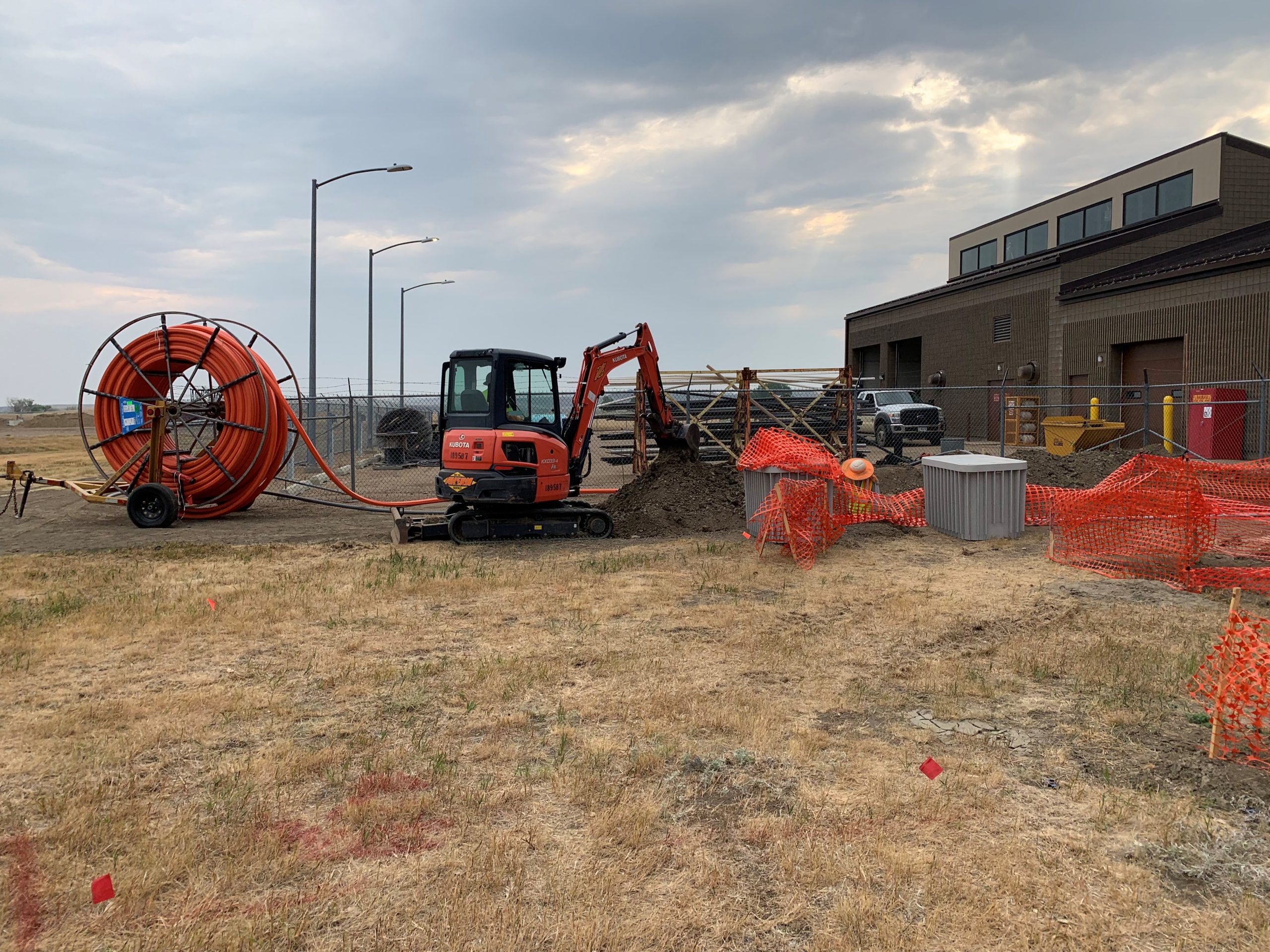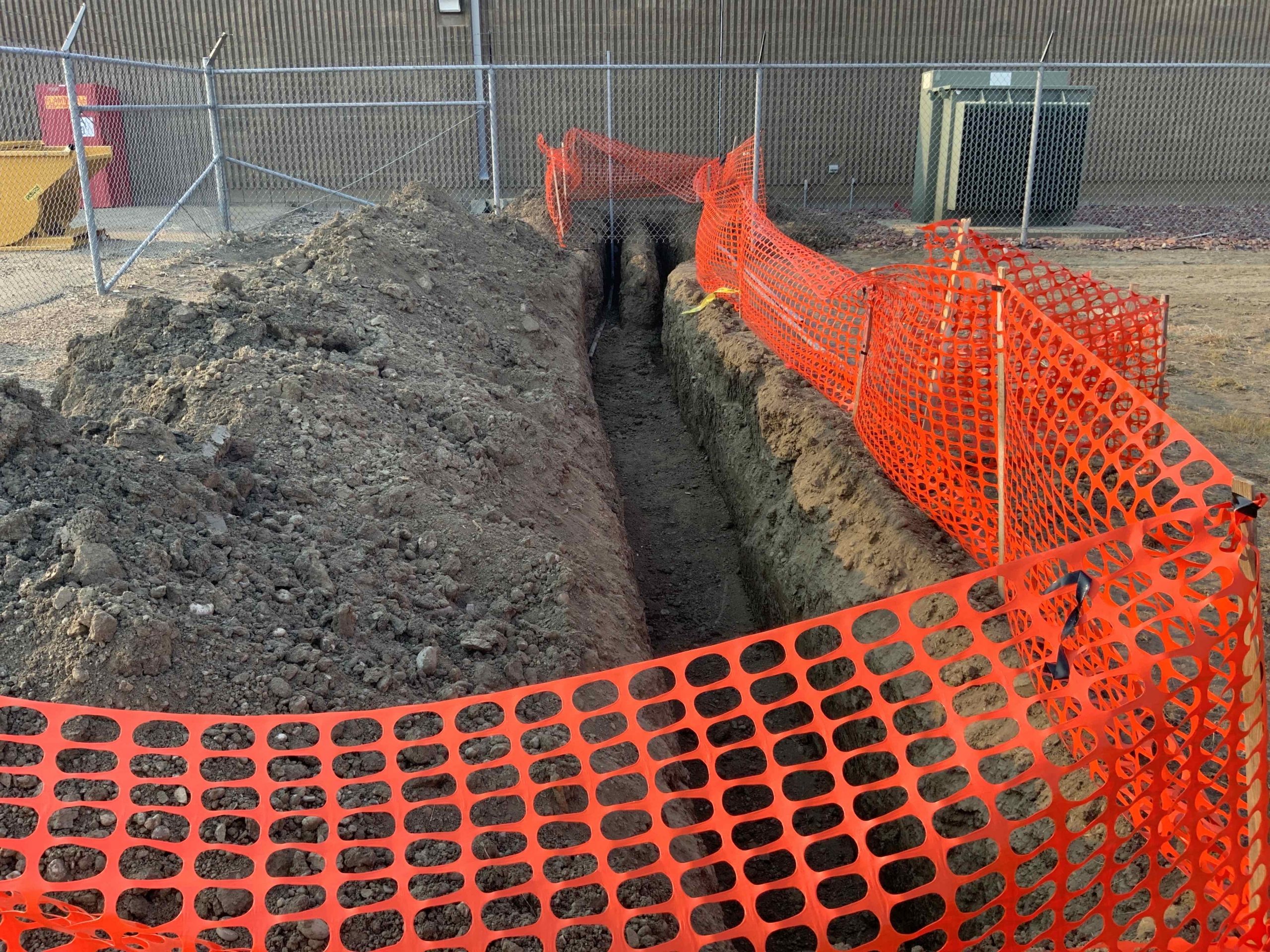 - Directional bored pathway between two buildings on-site for 24 strand fiber connection.