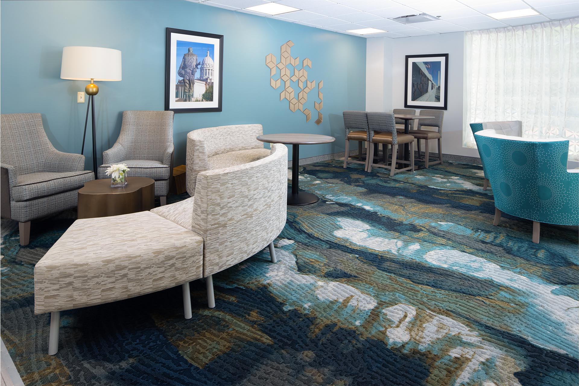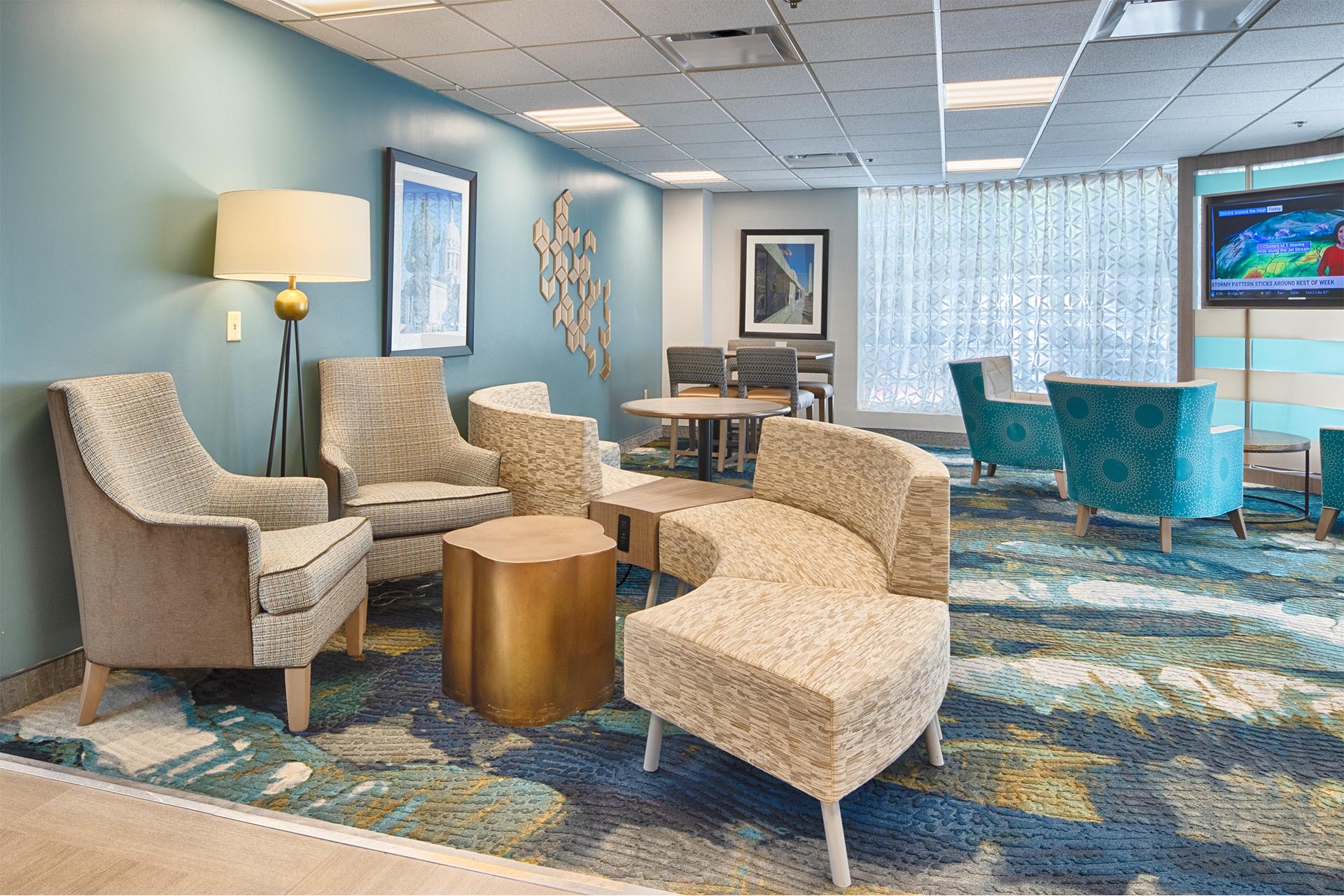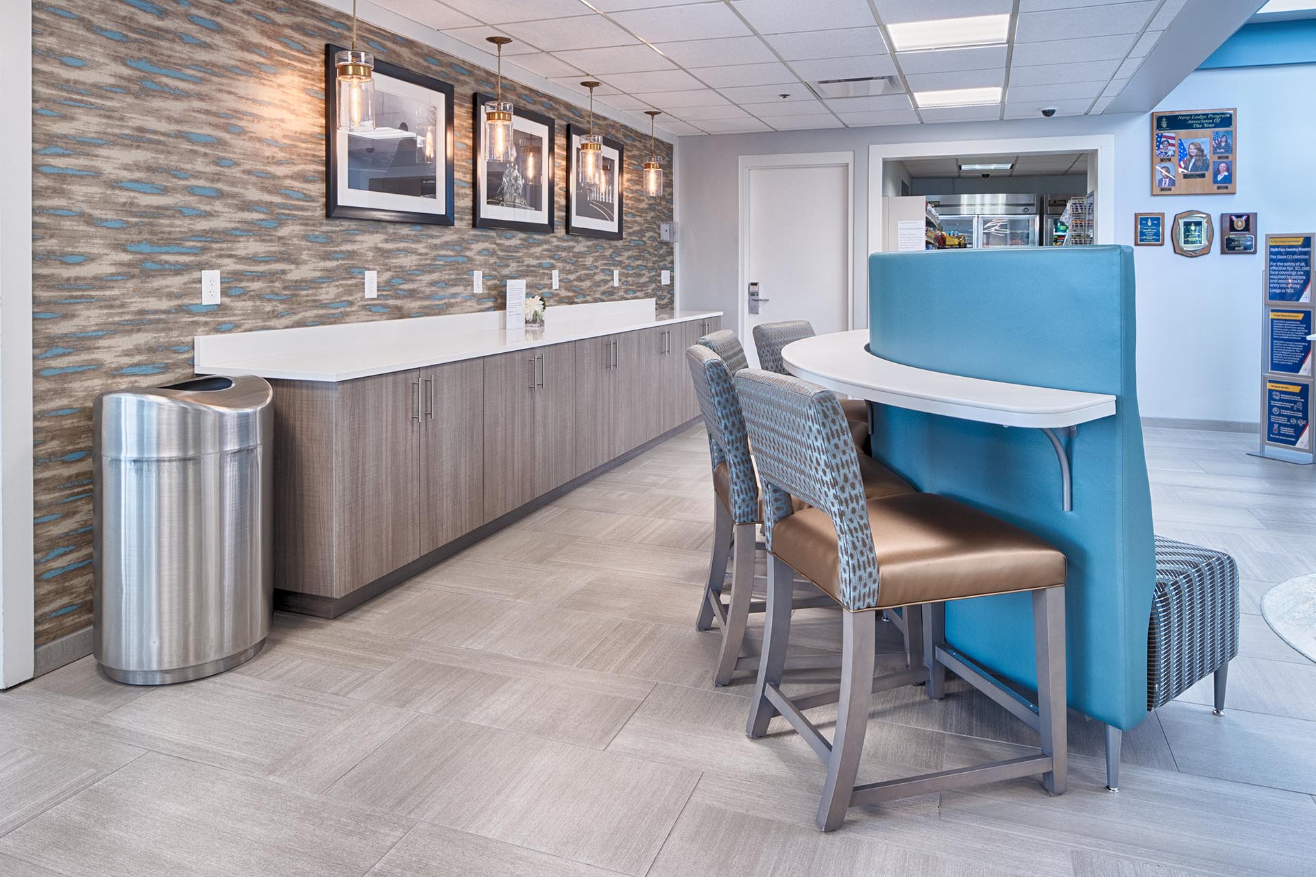 This project involved the complete design and renovation of a facility, including interior design and the installation of new Furniture, Fixtures, and Equipment (FF&E). Existing FF&E, walls, ceilings, flooring, and MEP (mechanical, electrical, and plumbing) systems were removed, and new finishes, flooring, window treatments, and MEP systems were installed to enhance the upgraded areas.