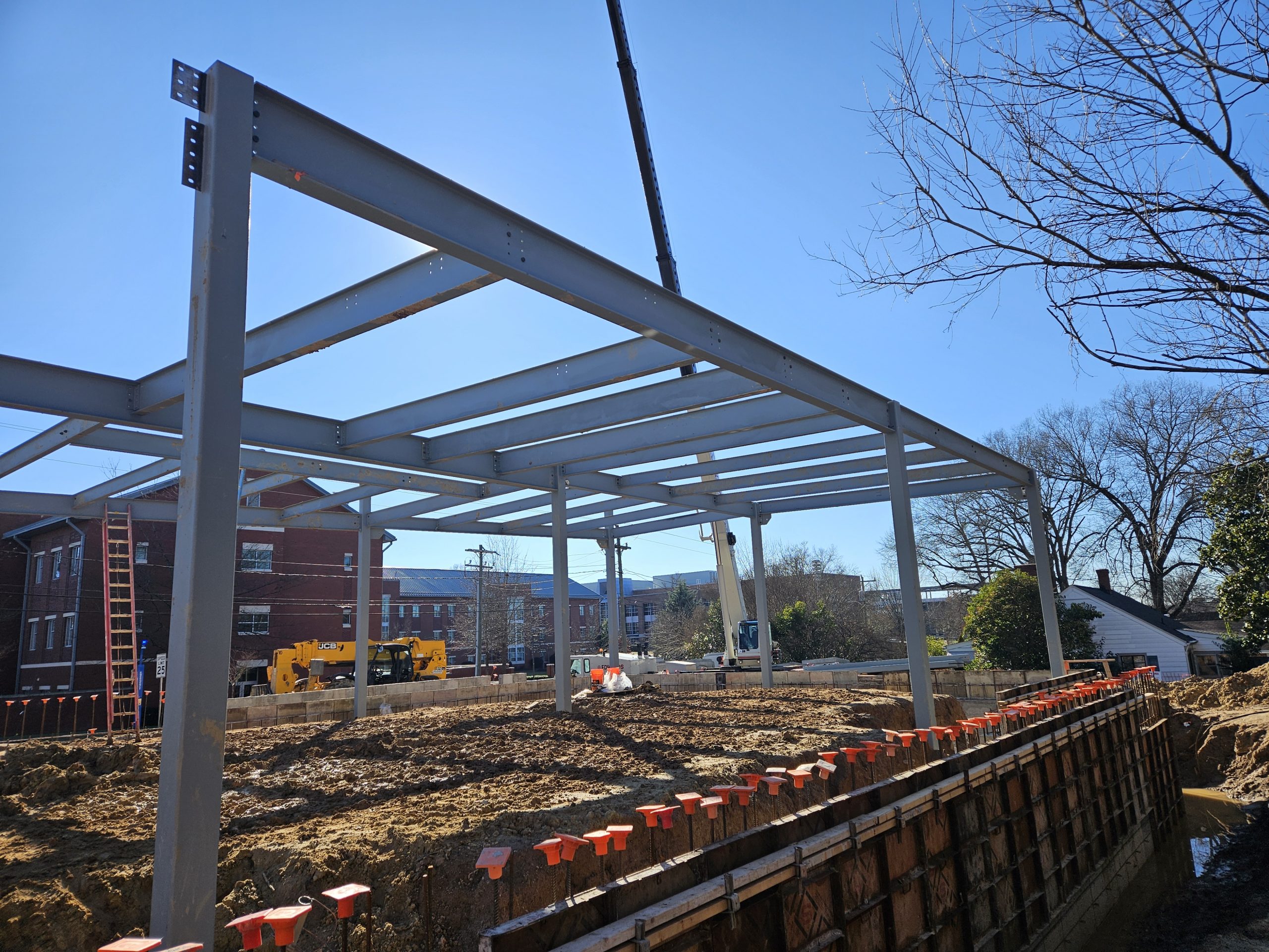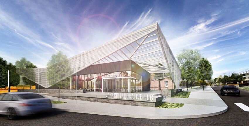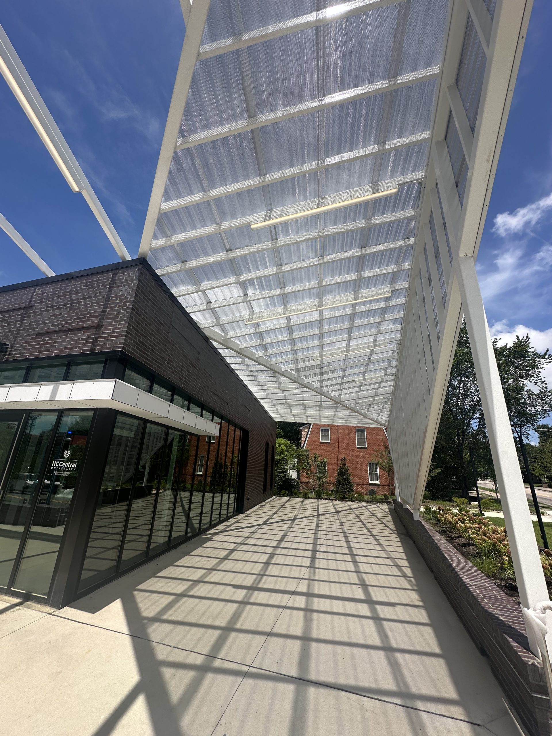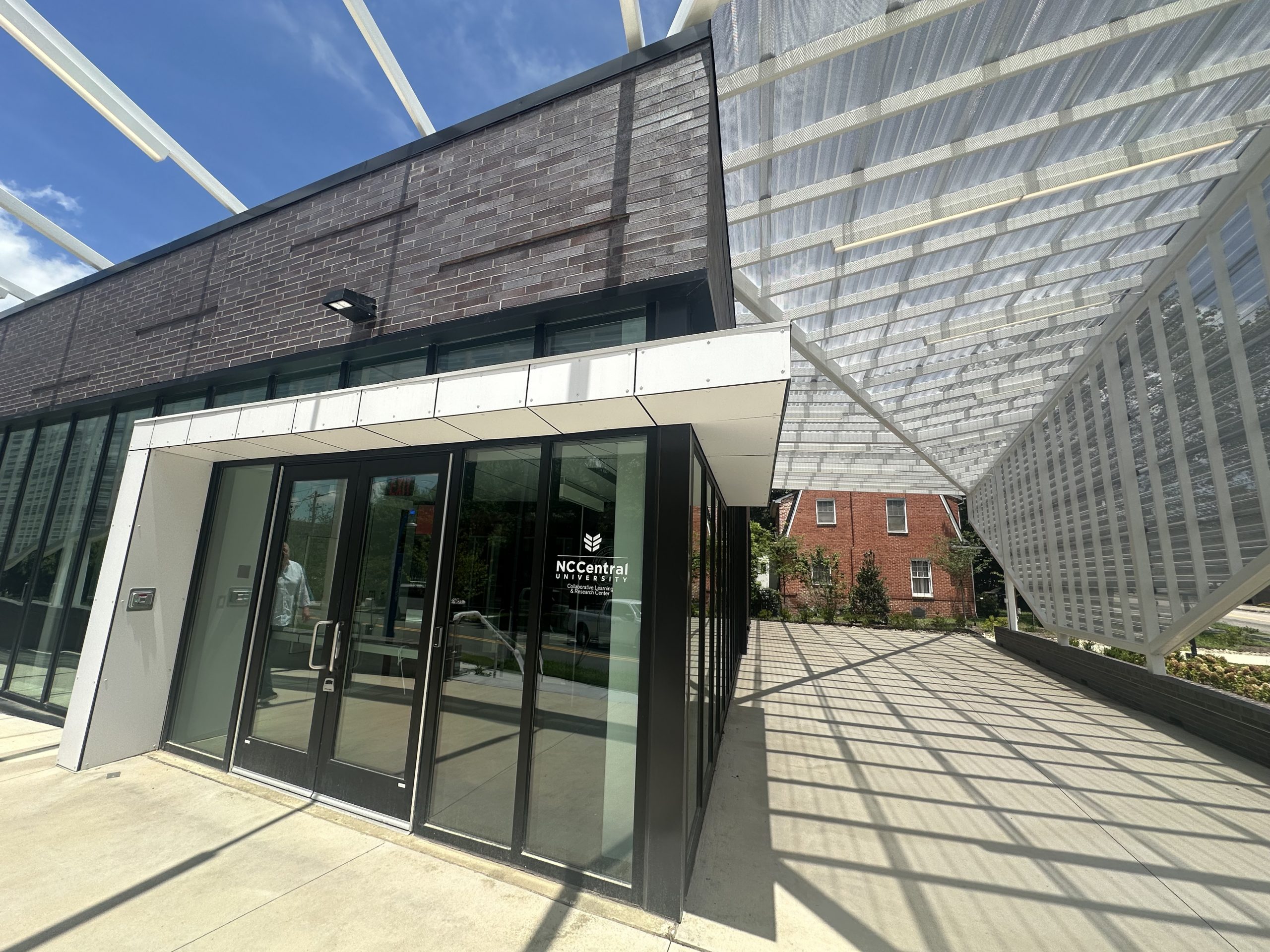 We're excited to announce the construction of a new 4,900 square foot Collaborative Learning and Research Center on North Carolina Central University's College campus. This innovative building will enhance access for off-campus students, offering a dynamic hub for group collaboration and informal gatherings, both in person and virtually. Its open, transparent design ensures security while fostering an inviting atmosphere. Located at the corner of Fayetteville and Lawson Streets, the Center will serve as a gateway to the campus. In addition to spaces for food service and student convenience, a covered canopy will provide extra outdoor areas for versatile use of all NCCU students.