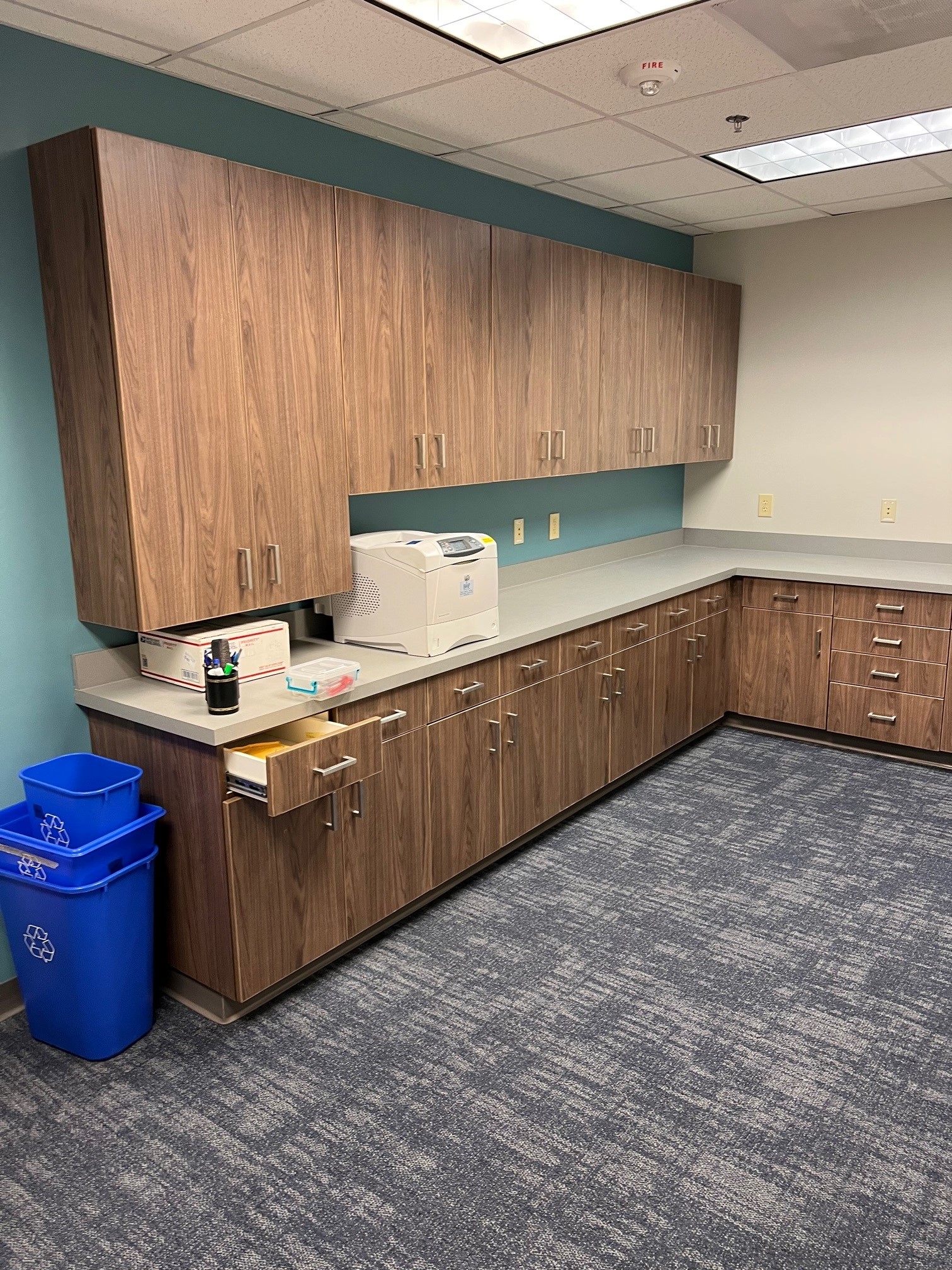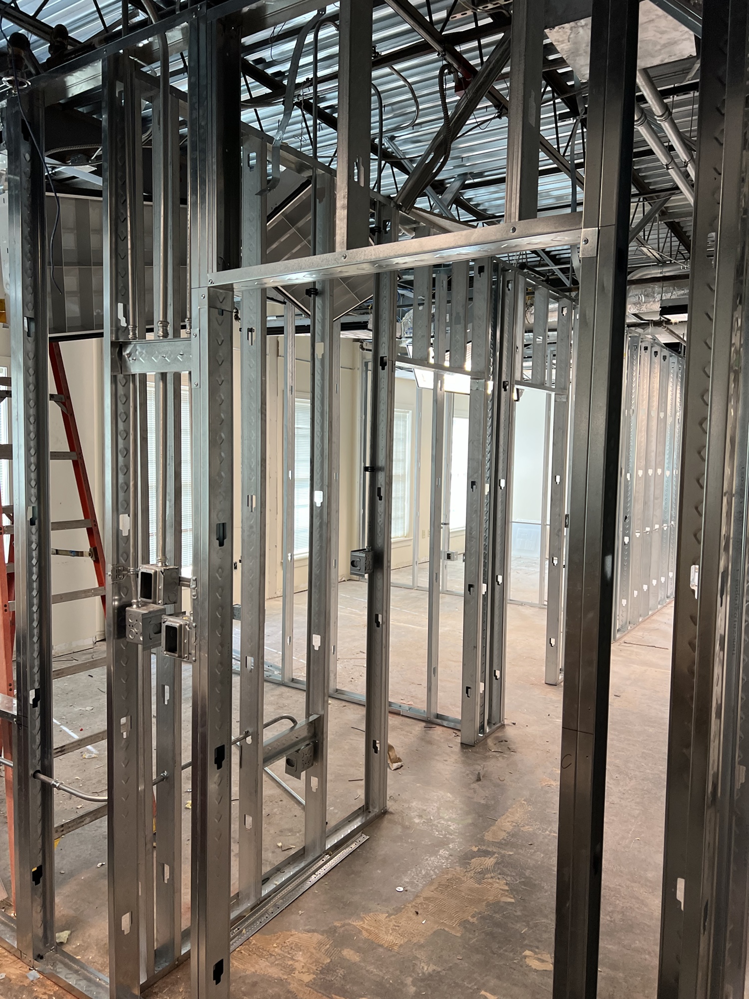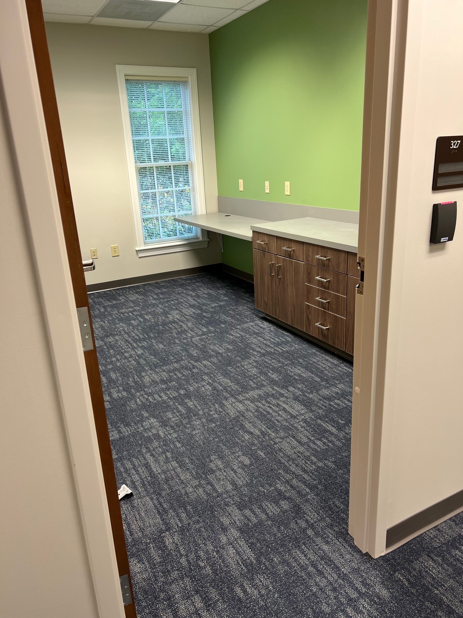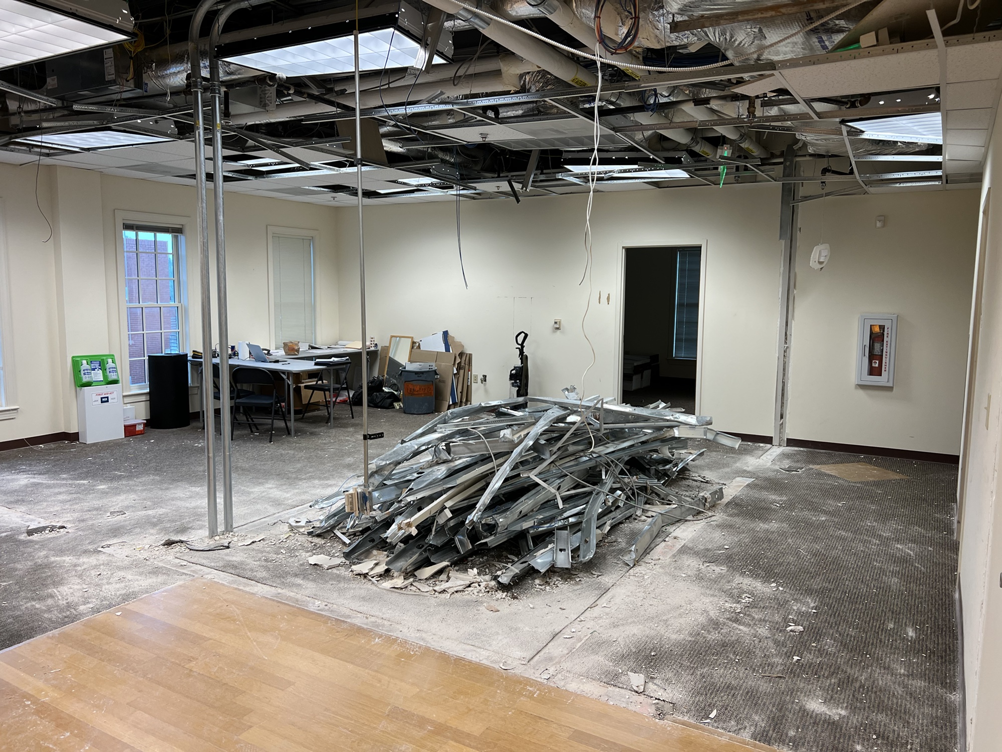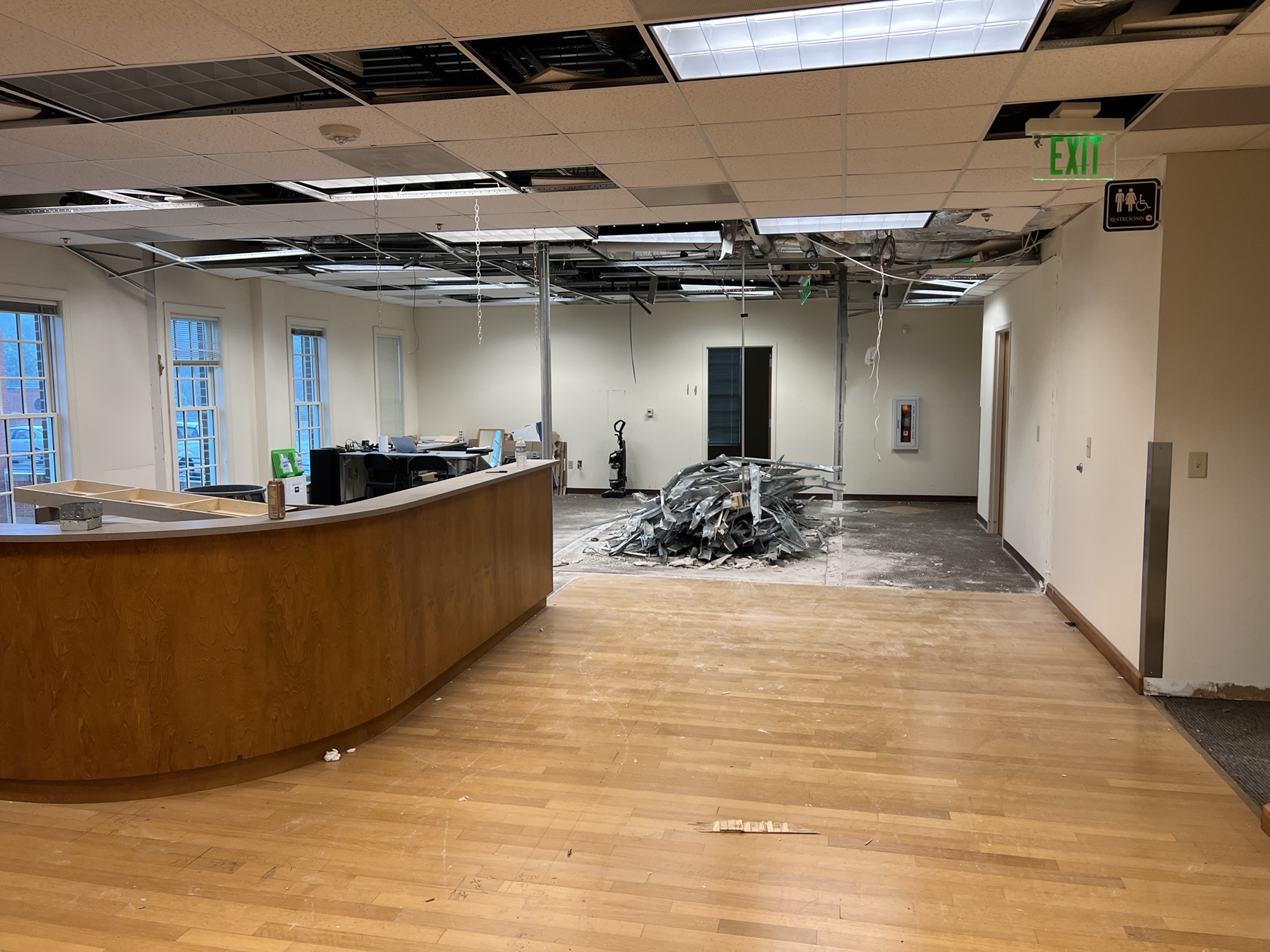 This project consists of a renovation of 11,300 square feet on the 3rd floor of the Orange County West Campus office building in Hillsborough, NC. The building is a four-story steel framed structure with brick masonry cladding. Scope of work consists of new flooring, demo of existing interiors and placement of new steel frame and gypsum walls and ceilings, new lighting fixtures, etc.